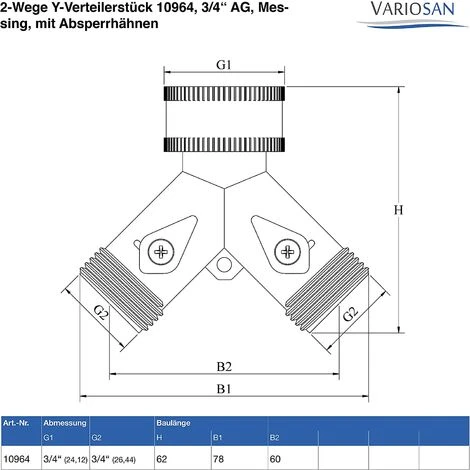 Contenu de la livraison : distributeur en Y, 2 buses, 2 raccords femelles, 2 Ă©crous union, joints d’Ă©tanchĂ©itĂ©