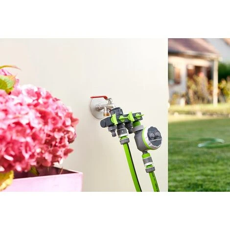 - Permet de connecter un tuyau d’arrosage équipé d’un raccord automatique à un robinet.