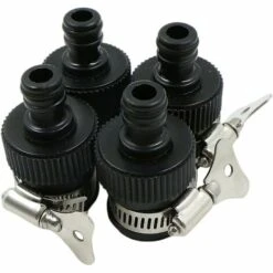 BAICCCF Robinet De Cuve De Récupération D’eau Adaptateurs Rapides De Raccords De Robinet De Tuyau – 4 Connecteurs De Tuyau En Polypropylène Et En Caoutchouc, Sans Filetage, Adaptés Aux Robinets Ronds De 14 à 24 Mm De Diamètre Extérieur, Noir