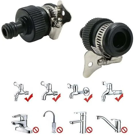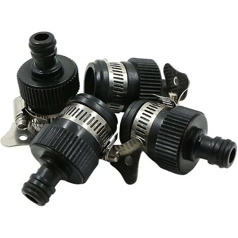 Adaptateurs rapides de raccords de robinet de tuyau – 4 connecteurs de tuyau en polypropylène et en caoutchouc, sans filetage, adaptés aux robinets ronds de 14 à 24 mm de diamètre extérieur, noir