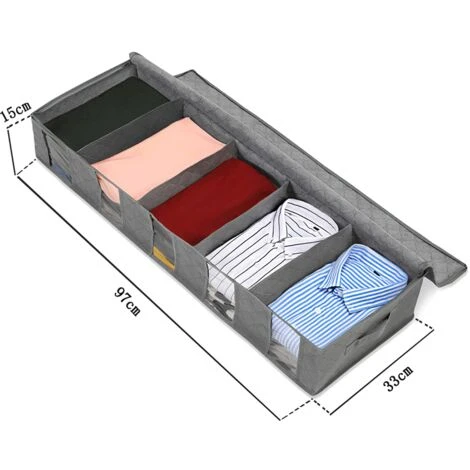 [Grande capacité de stockage] -Vient avec une boîte de rangement (97x33x15cm, 63L), qui est assez grande pour contenir une couette extra large dans le conteneur. Convient aux vêtements, jouets, courtepointes, oreillers, couvertures, décorations de Noël et autres articles, surtout lorsque les saisons changent [Structure solide et non déformée] -L’organisateur de vêtements bon marché est volatile. Afin d’empêcher les articles d’être serrés et froissés, il y a des barres solides autour des articles qui peuvent supporter l’ensemble de l’organisateur de vêtements sans déformation. Il y a 4 partitions pour diviser l’espace et stocker différents vêtements de différentes catégories [Découvrez plus d’espace disponible] -Seulement 15 cm de hauteur, conçu pour être rangé sous le lit et le haut de l’armoire, augmentant l’utilisation de l’espace de la pièce, adapté aux petits appartements familiaux, aux dortoirs étudiants, etc. Comparé aux boîtes volumineuses, il est léger et pliable, et peut être plié et rangé lorsqu’il n’est pas utilisé [Matériau robuste et durable mis à jour] -Entouré d’un tissu non tissé composite à trois couches respectueux de l’environnement, inodore et respirant, le fond est un tissu non tissé résistant à l’abrasion de 120 g, ce qui peut augmenter la tension. La poignée est cousue sur le panneau latéral pour le renforcement, ce qui prolonge la durée de vie de la poignée et facilite l’extraction et l’extraction [Vue transparente et double fermeture éclair] -Espace de rangement en PVC transparent, vous pouvez entrer rapidement dans l’espace de rangement sans l’ouvrir. En même temps, il est 100% efficace pour empêcher l’humidité, la poussière, la moisissure et les insectes d’entrer. Charnière en alliage mise à jour n. 5, pas facile à casser, la durée de vie est plus de 2000 fois