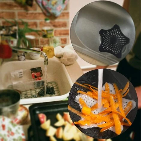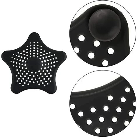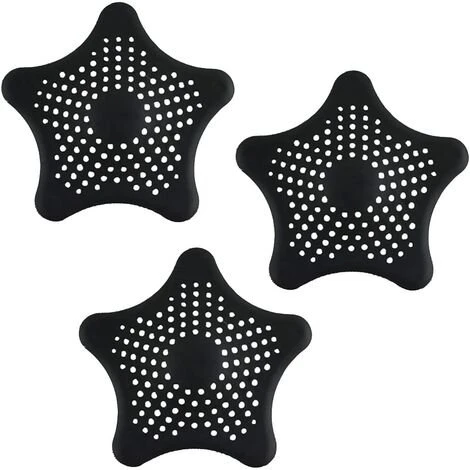 Siphon de sol en silicone : 3 x 16 cm de diamètre, en forme d’étoile de mer, en silicone noir, pour la plupart des siphons.