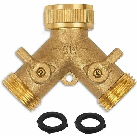Dontodent Répartiteur De Robinet De Tuyau D’arrosage En Laiton Robuste (2 Voies) Nouveau Et Amélioré Répartiteur De Tuyau Adaptateur De Tuyau Avec 2 Vannes Plus 2 Rondelles En Caoutchouc Et Ruban Adhésif