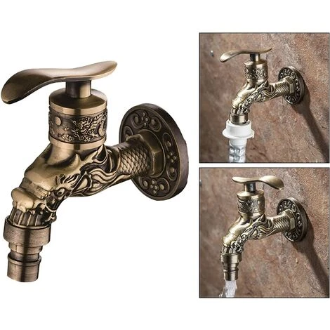 【Antique Bibcock décoratif】Intégré construction peut prévenir les fuites d’eau efficacement. Peut être utilisé en salle de bains, balcon, cuisine, piscine, jardin, évier, machine à laver, etc.