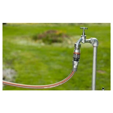 Le raccord d’arrosage rapide Premium GARDENA est doté d’une bague de serrage en métal qui garanti un excellent maintien du tuyau d’arrosage.