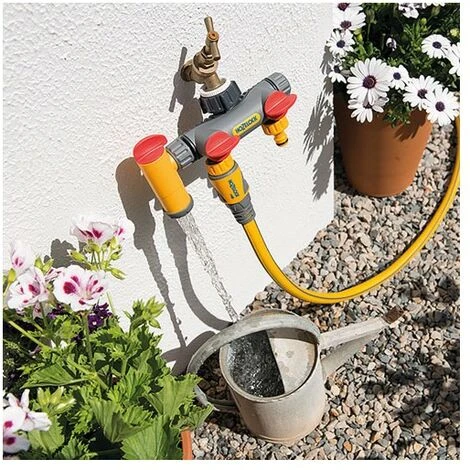 SĂ©lecteur 2 circuits 20/27 et 15/21 flowmax blister de la marque HOZELOCK. Relie 2 tuyaux Ă un robinet extĂ©rieur filetĂ© diamètre 20/27 et 15/21. IdĂ©ale pour une utilisation avec les systèmes et rĂ©gulateurs d’arrosage automatique.SĂ©lecteur multi circuits 21mm, 26.5mm et 33.3mm permet de raccorder 2 tuyaux sur un seul robinet. Avec vanne de dĂ©bit rĂ©glable, ouverture/coupure d’arrivĂ©e d’eau, indĂ©pendantes pour charque sortie.