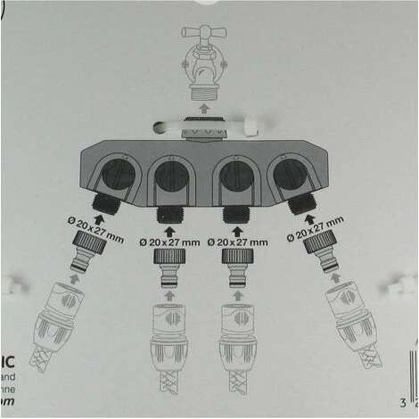 Le sélecteur 4 voies indépendantes vous permet de créer jusqu’à 4 réseaux d’arrosage à partir de votre robinet. Il est compatible avec la plupart des raccordements automatiques.