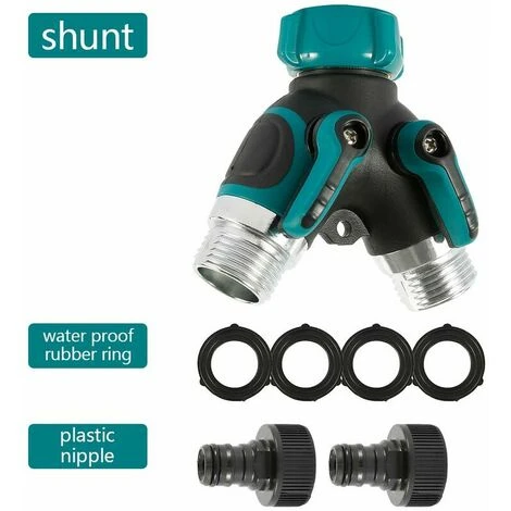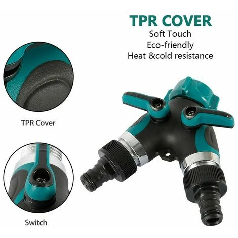 Les deux sorties sont rglablesVous pouvez connecter deux tuyaux un raccordement d’eau en mme temps. Le raccord du tuyau d’eau sert de pice de raccordement entre le robinet et les tuyaux.Facile installerAucun outil ncessaire, facile installer le sparateur de robinet de tuyau extrieur en tournant uniquement le connecteur.Contrle de dbit rglable Le robinet de connecteur -Y peut facilement convertir un seul robinet de jardin en doubles sorties, chaque sparateur de tuyau connect peut tre rgul indpendamment et teint individuellement, de sorte que vous pouvez en fonction de vos besoins rguler le dbit d’eau.Pour les robinets de 3/4 poucesLe distributeur d’eau est livr avec des raccords correspondants pour 3/4 pouces, il suffit de choisir le bon adaptateur!.Largement applicableNotre connecteur de robinet de jardin 2 voies peut contrler l’irrigation multitche, pratique pour l’arrosage du jardin, de la pelouse, du lavage des animaux de compagnie, des voitures et du montage du lave-vaisselle et du lave-linge dans la cuisine.