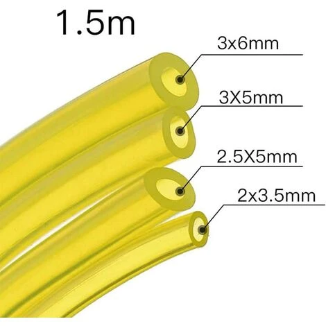 Taille : le kit de tuyau de carburant comprend quatre tailles. Ils sont (diamètre intérieur x diamètre extérieur) : 3 mm * 6 mm (0,12 * 0,24 pouce), 3 mm * 5 mm (0,12 * 0,2 pouce), 2,5 mm * 5 mm (0,1 * 0,2 pouce), 2 mm * 3,5 mm (0,08 * 0,14 pouce )) diamètre de. Chaque taille mesure 1,5 mètre (59 pouces) de long.