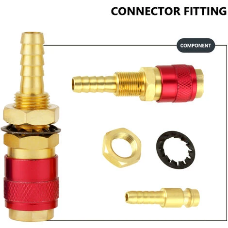 Raccordement rapide de l’eau/du gaz entre la torche de soudage et la fiche de soudage.
